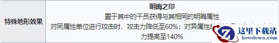 明晦之印的效果也不止于此,“遮目”、“得意”两个敌方单位只会被相同属性的我方单位阻挡,这使得部署干员时需要格外注意这两种敌人的走向。