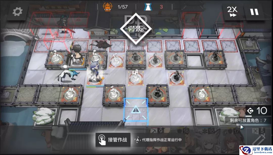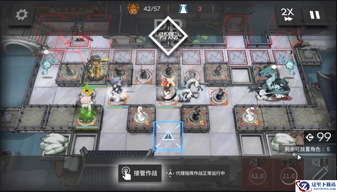 开局在下方部署先锋干员以及奶盾抗住下路的攻势,同时积攒费用。