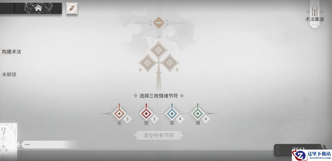 乐音符为黄色、怒音符为红色、哀音符为蓝色、惧音符为绿色,选择相对应的音符就可以合成不同的情绪,全情绪合成如下。