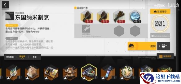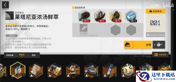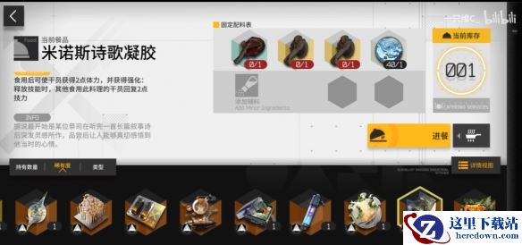 除了制作行动所必需的高能有机饮料之外,食物在后勤处也可以烹调多种多样的食品。