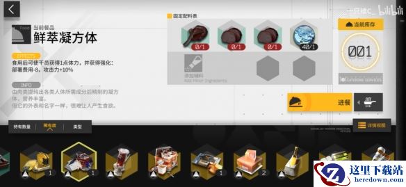 食品具有增强作战能力的效果,可以为指定干员安排就餐,就餐后将在一轮演算中永久生效。