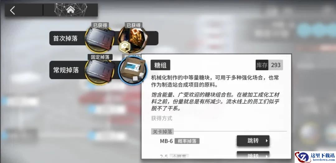 MB-6 制定计划概率掉落蓝色材料“糖组”。糖组的样本数还很低,预估等到量上去了,也能达到之前活动的21.4理智左右。刚刚在「长夜临光」的NL-8中出现过的它,可以说是完成了梅开二度。