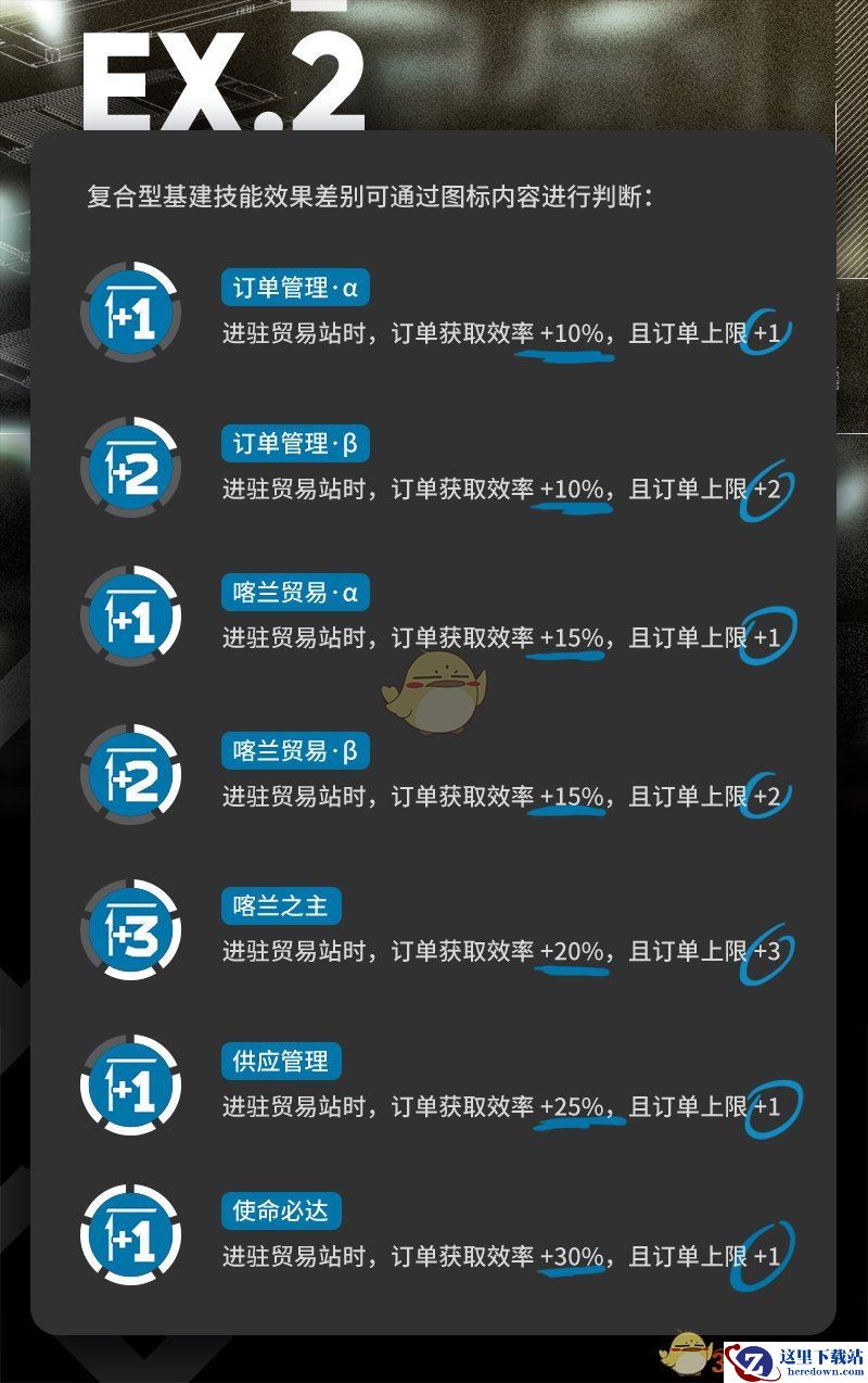 同时,部分复合型基建技能图标排序规则较为特殊,可以通过基建技能图标内容进行判断。详情请见图内信息参考。