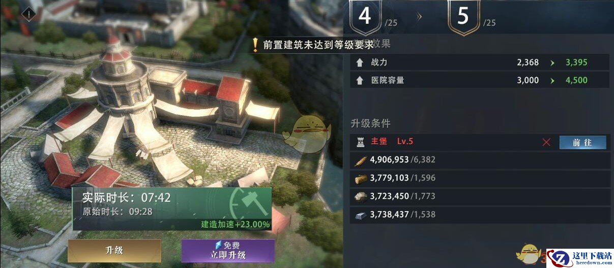 除此之外,在游戏内前期的主线章节任务都要求主堡等级达到一定等级才行,也算是各位领主完成主线任务,推进剧情发展非常重要的一环了