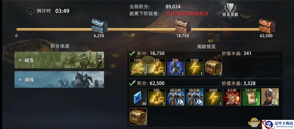 由于在游戏前期,各位领主能够通过获得以及新手任务获得大量的加速道具,我们可以囤积起来,用来升级主堡。当然还可以通过紧急委托活动获得相应的奖励宝箱,其奖励对于各位领主冲级主堡也很有帮助。建议大家训练低等级士兵,资源消耗量少,时间消耗少,积分获得速度还是非常快的。