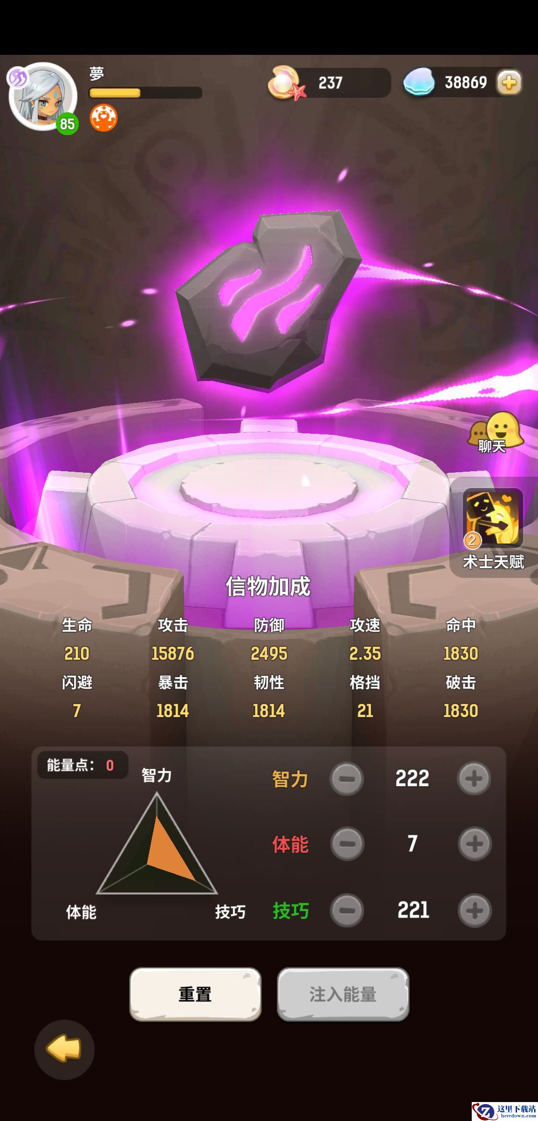 体能和技巧的区别是闪避和暴击,因为术士是输出所以点320增加暴击较好。
