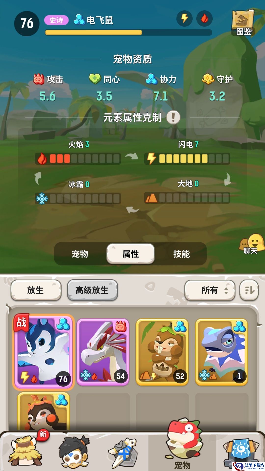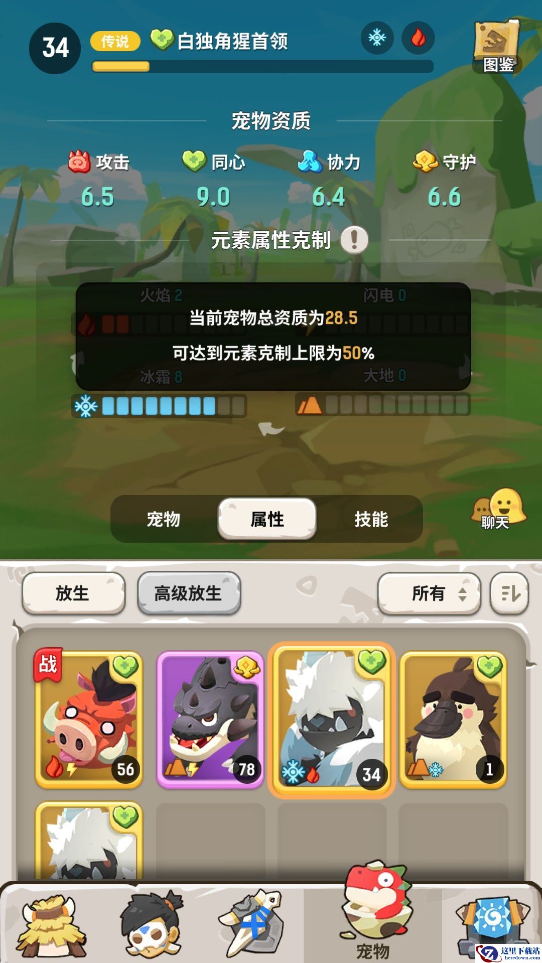 大多数宠物都拥有双属性,属性一高一低。个别宠物单属性,属性特别高这种单属性的一般是攻击宠。