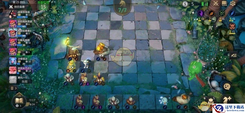 在9回合之后如果非常顺利可以提前升7人口,不过最晚要在17回合到达7人口,期间不要去搜棋子,可以拿一个独角兽在手卡凑德鲁伊羁绊来更快的提升扭木贤者和慧语先知的质量。