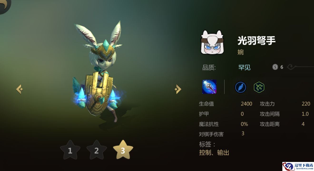 拿卡优先度3星,光羽猎必拿,战猎前期用于凑三猎可以先拿一手,其他阵容必不拿,没有3猎BUFF的情况下,很弱,有3猎勉勉强强吧。光羽猎必追3棋子。