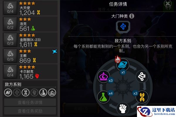 进入到战役任务当中会让我们选择五名英雄组成小队,点击查看任务详情会显示敌方英雄的系别,我们只要选择克制敌人系别的英雄就可以。