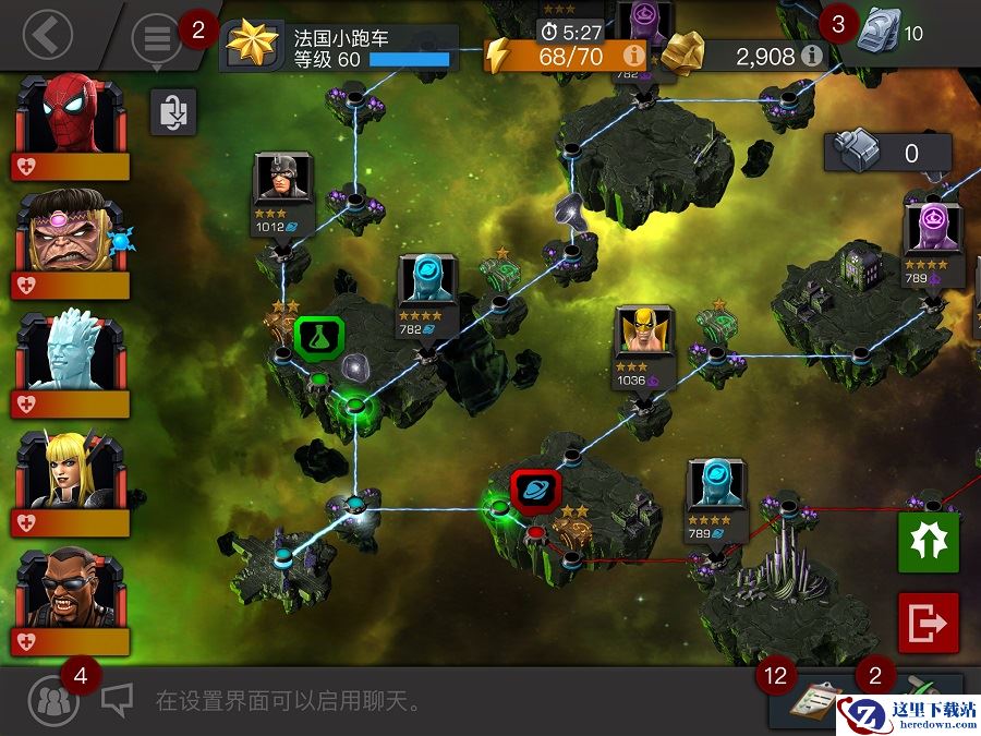 而这一关卡的敌人种类有宇宙系、变异系、生化系,对应的被克制的系别是神秘系、格斗系、科技系。而关卡中除了灭霸,战力都不会差太多,灭霸自身是宇宙系的超级英雄,所以除非你有很高战力的英雄或者自信能打过灭霸,这里都建议带一个神秘系的超级英雄,比如铁拳、红兜帽、多玛姆,利用系别克制的优势打败灭霸。