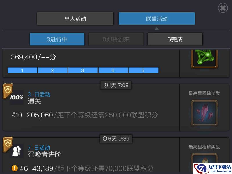 除了每日的活动副本之外这些活动是很好的获得突破材料的地方,所以一定要集中我们的资源或者加入活跃的联盟来拿到这些奖励。