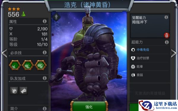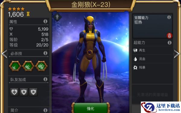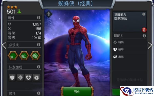 在漫威:超级争霸战当中,每个英雄都分为六个星级,只有四星以上的英雄才会获得完整的属性、技能和队友加成。