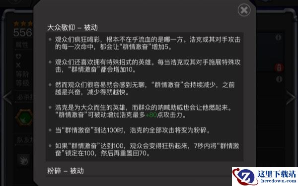 拿浩克(诸神黄昏)这个英雄来说,除了自身的超能力之外,他的很多特效攻击都要通过被动技能“大众敬仰”来触发。