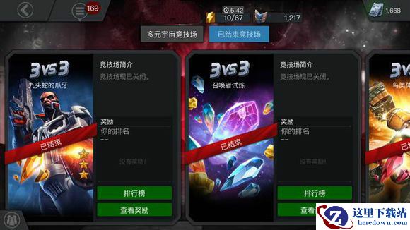 当我到达三级的时候就会开启竞技场,竞技场分为1v1和3v3两种模式,根据奖励不同3v3也分为几种,我们前期主要参加的就是获得英雄的竞技场。