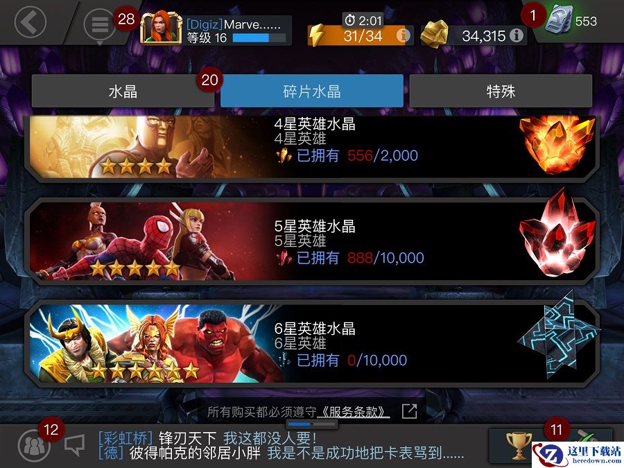 《漫威:超级争霸战》英雄获得其实相当容易,因为游戏的奖励是十分丰厚的。一个高级英雄水晶有高达20%的概率获取三星英雄,高级水晶在游戏前期的获取是可以说是简单到不能再简单了,登录邮箱、加入联盟……各种各样的渠道都能让你迅速集齐一套三星英雄阵容。