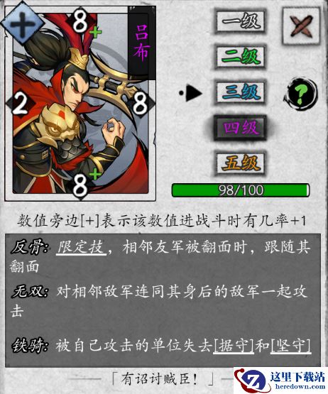 升级后的吕布更加强大,打的不止是相邻的,相邻旁边的也会一同被攻击,是个十分强大的技能。