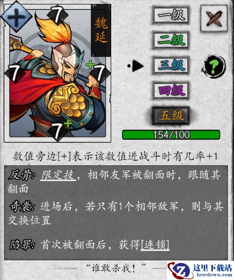 升级到三级时,魏延拥有【奇袭】,位移进场,打乱敌方阵型。