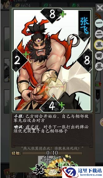 5、张角:在关羽和张飞只带一个的情况下,还剩下一张卡牌位置可以选择带一手张角,其特殊的能力能够按照相对方位随机选择一名点数更低的敌人进行攻击,用于解决一些难解决的武将。