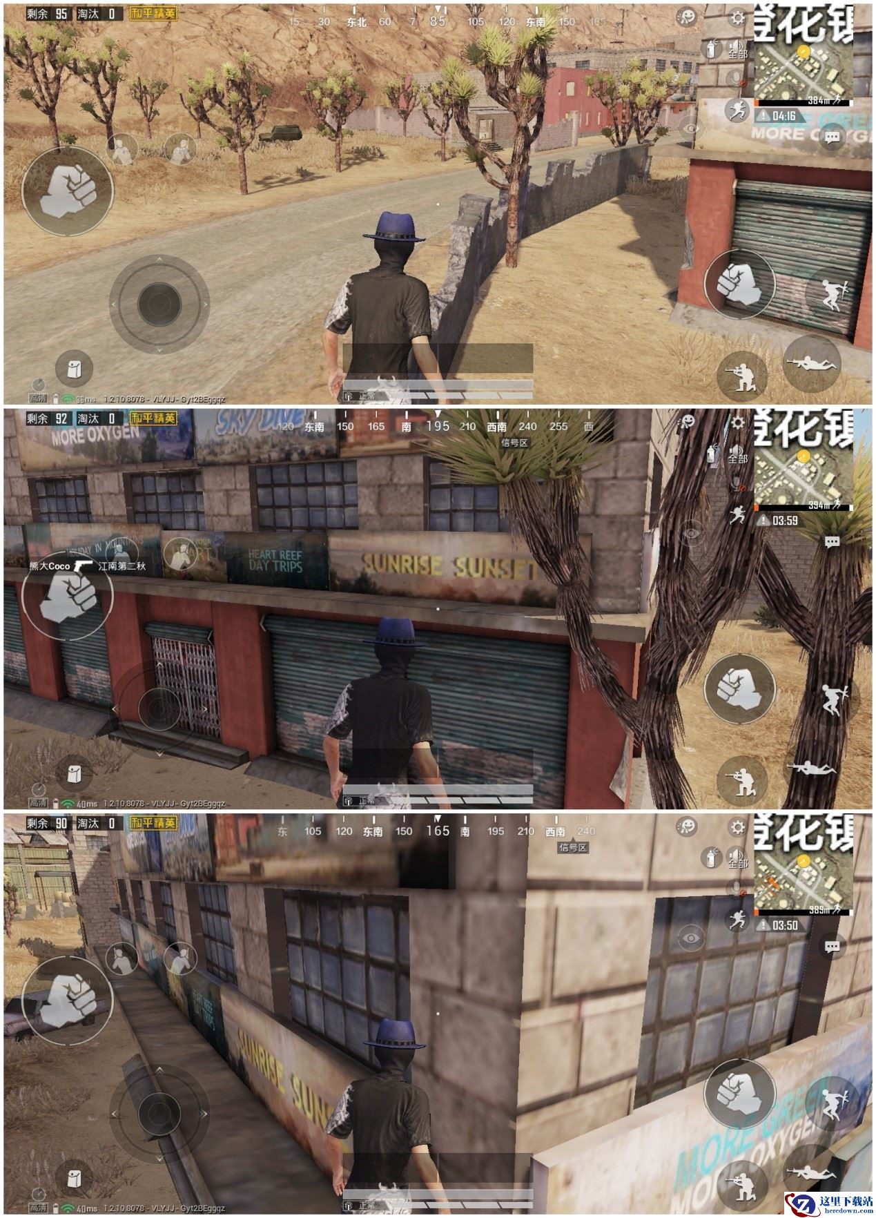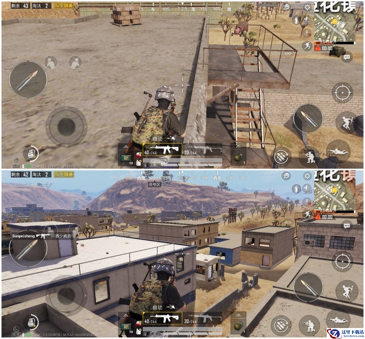 利用断梯可以直接爬到屋顶,可以看到断梯建筑的高度在橙花镇中是名列前茅的,玩家只要往下一扫就能将敌人映入眼中,这在实战中可是非常巨大的优势。