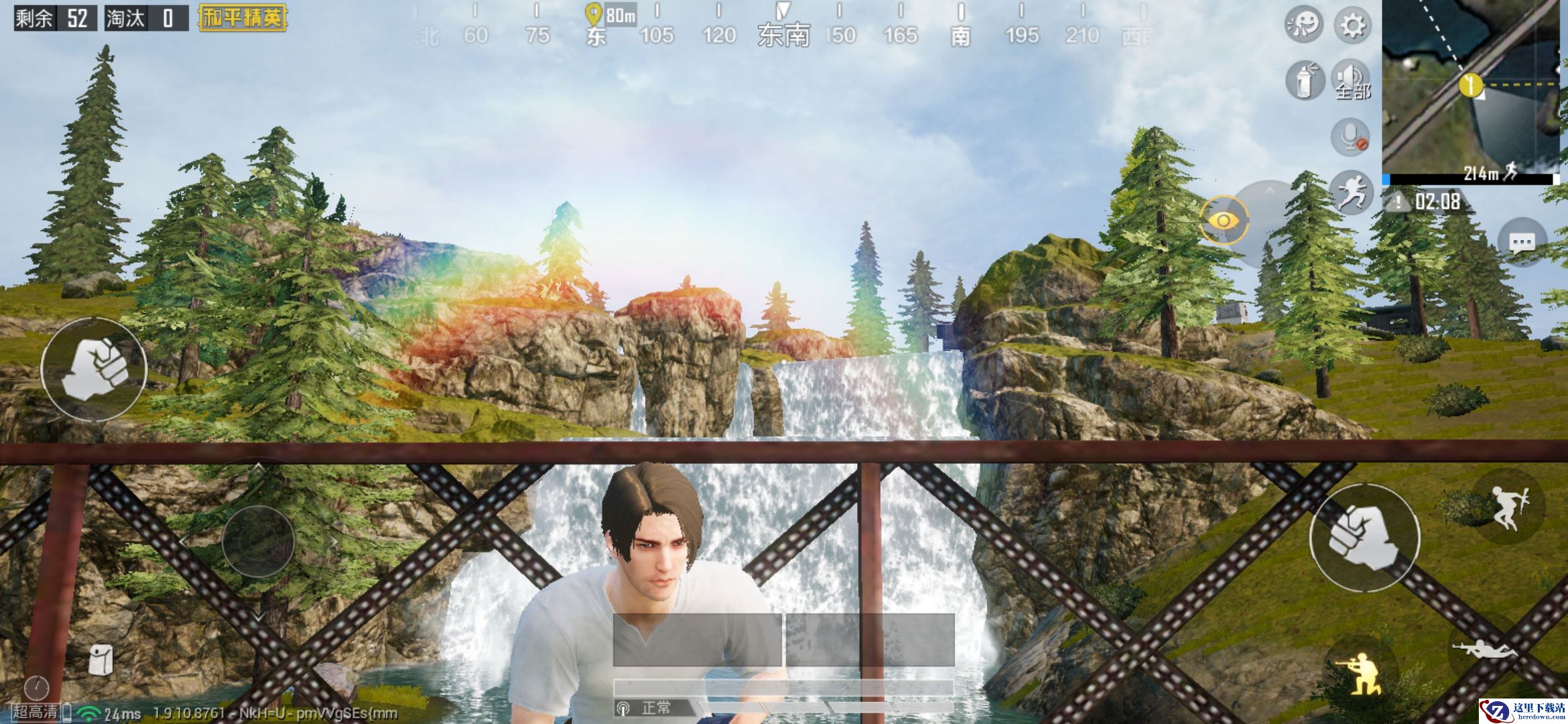瀑布是雨林区的景点,位于地图东南侧的核心区域。雨林区多余的降水汇聚在断层前,流经坡度落差大的悬崖就形成了瀑布。瀑布分为两阶,在跳伞时可以远远就看到石阶间的彩色拱门。