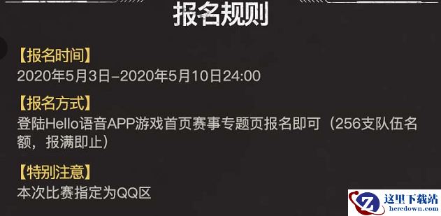 由《和平精英》和Hello语音联合开展的精英挑战周赛目前已正式开启报名,在5月3日-5月10日24:00,登陆Hello语音APP游戏首页赛事专题页即可报名。本次赛事共支持256支队伍共同参与,决出最强特种兵队伍。