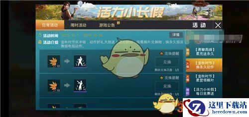 和平精英是一款比较从画面、地图、射击手感等多个层面。为玩家全方位打造出极具真实感的军事竞赛体验。在游戏中,国庆刚过,迎来了最后一波福利,枫叶可以对换永久动作拍灰舞与电摇,枫叶可以免费获得,下面小编给大家带来了枫叶的获取方法,那我们一起去看看吧!