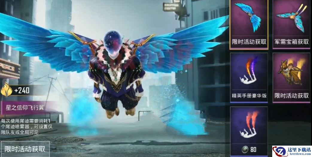 2、星之信仰飞行翼:每次使用尾迹需要消耗1个尾迹喷雾器,可设置仅限队友或全局可见。翅膀是真的太好看,还有蓝色尾迹,跟翅膀颜色一样。