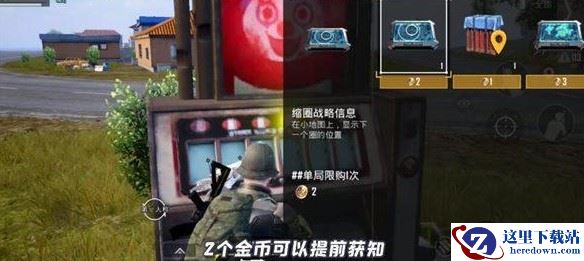 3、另外还可以在商店中兑换缩圈战略信息(在小地图上,显示下一个圈的位置)、敌人密度热力图(在小地图上显示敌人聚集的场所)、空投箱战略信息(在小地图上,显示下一个空投箱的位置);
