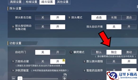 第二种方法则是在八角笼的外围,找到设置按钮,选择【战斗设置】按钮,在此设置处找到攀爬模式,模式选择【独立】;