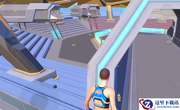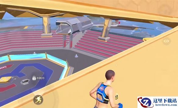 在天空赛场的上城区外围点,站到此处位置进行大型跳跃操作,然后一键跳跃到前方台阶上;