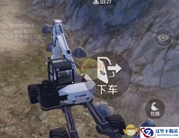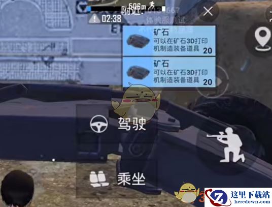 2、驾驶挖掘机对准石矿点击挖掘,就可以在地面上拾取矿石资源了,需下车点击拾取。