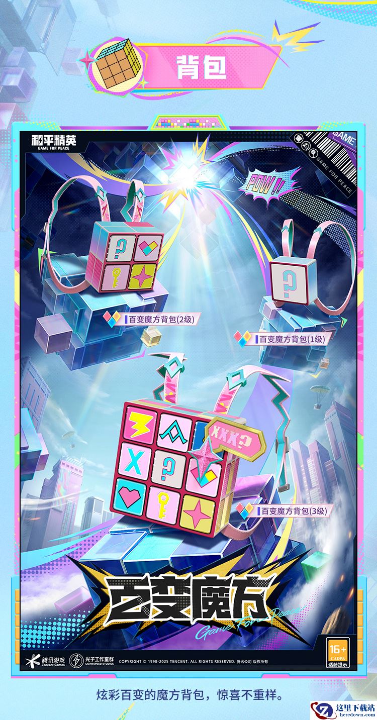 3、配件方面,“百变魔方背包”“魔方降落伞” 延续方块解构设计,背包表面的 3D 立体纹路与降落伞展开时的缤纷色块矩阵,进一步强化 “魔方世界” 的主题感,被官方称为 “炸翻街的配置”。
