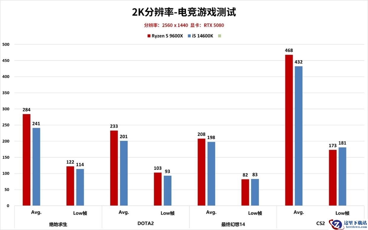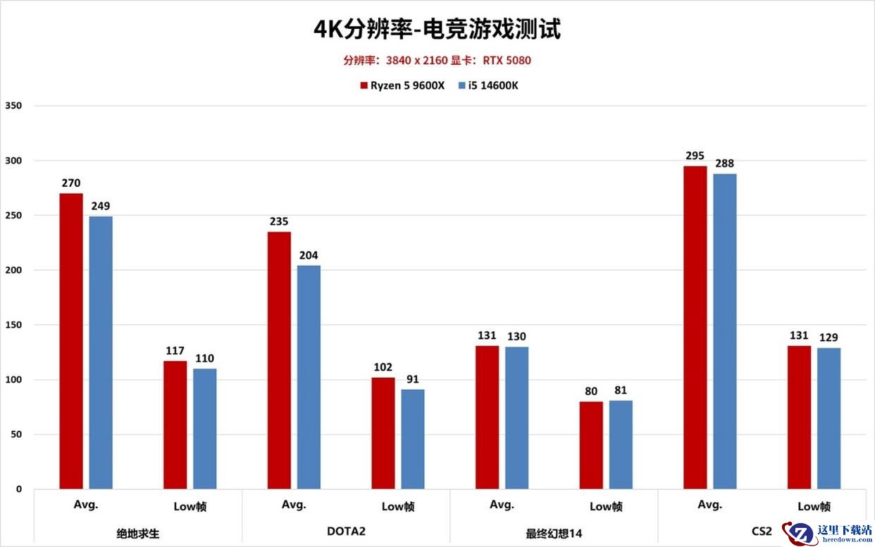 从我们的测试成绩看,锐龙5 9600X的游戏性能在2K分辨率下比i5 14600K快7%左右,在4K分辨率下也要快3%左右,其中电竞游戏的成绩更为突出,4K分辨率下的绝地求生和DOTA2依然能测出2位数的领先幅度。所以即使你装的是RTX 5080,只要你玩电竞游戏,锐龙 5 9600X依然能给你带来更快的帧数体验。