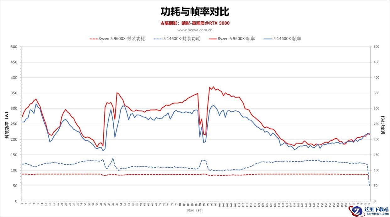 3.功耗:锐龙5 9600X以更低的功耗输出更高的帧数
