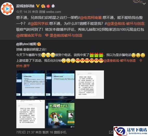 面对这份天降大喜,HT℡暖阳不由前往微博与好友分享了这份喜悦。从一开始默认将报喜电话视为诈骗电话,再到登录游戏石化5分钟,这位锦鲤的内心也如同过山车一般,经历了一番波折起伏。当然,也激起其他柠檬玩家的“想不通”:能不能给我也整一个?想要成为下一位锦鲤的探险家,不妨前往第一代BT锦鲤的微博吸吸欧气吧!