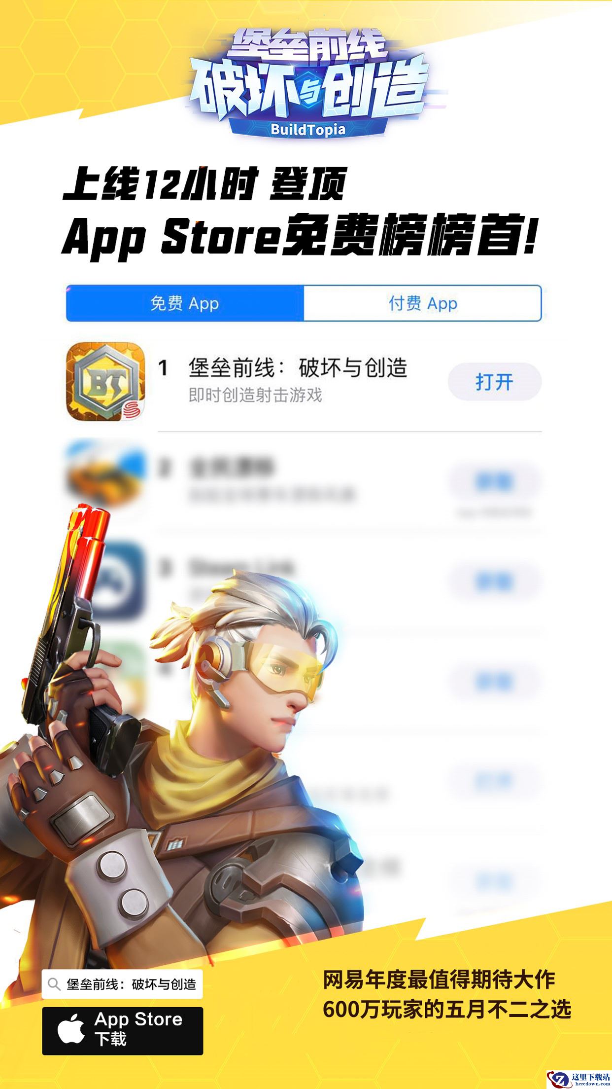 自网易首款即时创造射击手游《堡垒前线:破坏与创造》(BuildTopia)曝光以来,便获得了业界与玩家的关注。作为2019年最值得期待射击黑马,《堡垒前线》5月17日IOS独家首发不到12小时,即荣登App Store游戏免费榜榜首。