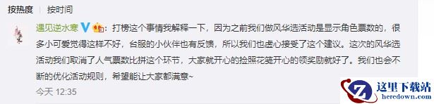 而今年6月《遇见逆水寒》正式公测,风华选活动也又一次开启,官方特地吸取了去年玩家的反馈,取消了角色的人气数值显示,避免进行不必要的攀比。官博更是一再强调:“知道大家的担心,我们不打榜,不做人气票数攀比!”