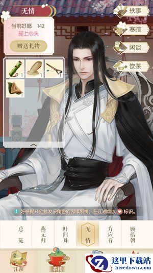 【寒暄】【闲谈】【饮茶】功能则可以与角色进行对应的互动。(需要好感度达到一定要求后才可以解锁)