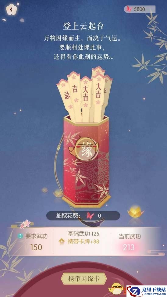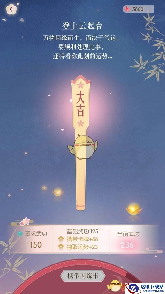 简单来说,过关要求就是:当前自己属性数值+携带因缘卡数值+抽取随机运势>当前关卡要求