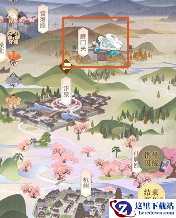 2、开始游历后,在江湖地图中可以看到一个躺着睡觉的小人待在某个地图中,点击她所在的地图进入游历场景