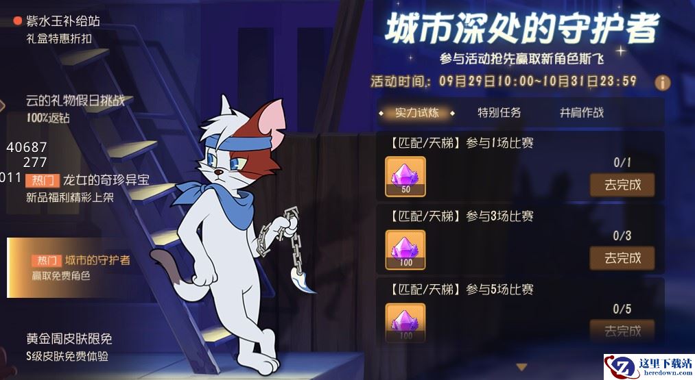 加入猫鼠追逐舞台的斯飞将与我们提前相见,并为小伙伴们展示了他最新的狩猎名单。国庆嘉年华期间,9月29日至10月9日全新的胜利挑战开启,参与指定场数的匹配、天梯玩法比赛,就能获得丰富的免费奖励;充值任意金额、拥有并使用云的礼物战斗、累计开启指定数量的紫水玉礼盒、累计使用指定数量的游玩券或星星,将获得丰富地紫水玉礼盒奖励,当完成以上所有任务时,还能获得斯飞体验卡;参与有斯飞的休闲玩法比赛,达到指定场数后将获得斯飞永久角色。丰富满满的奖励,小伙伴们快快打开游戏,一同完成任务吧!