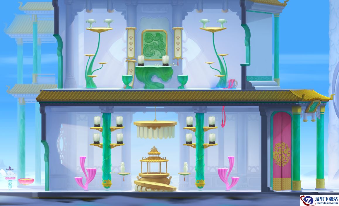 玉清宫为双层宫殿,雕琢精致的镂空花窗透出明朗的日光,将正殿照的通明。碧玉天成的桌椅、殿柱与灯饰,透出莹莹的青绿;而海中珊瑚树虽然脆弱易碎,却姿态美丽,被装饰在殿中也是别有风情。仙家器物自有不凡,也许会是你追逐过程中的助力哦!