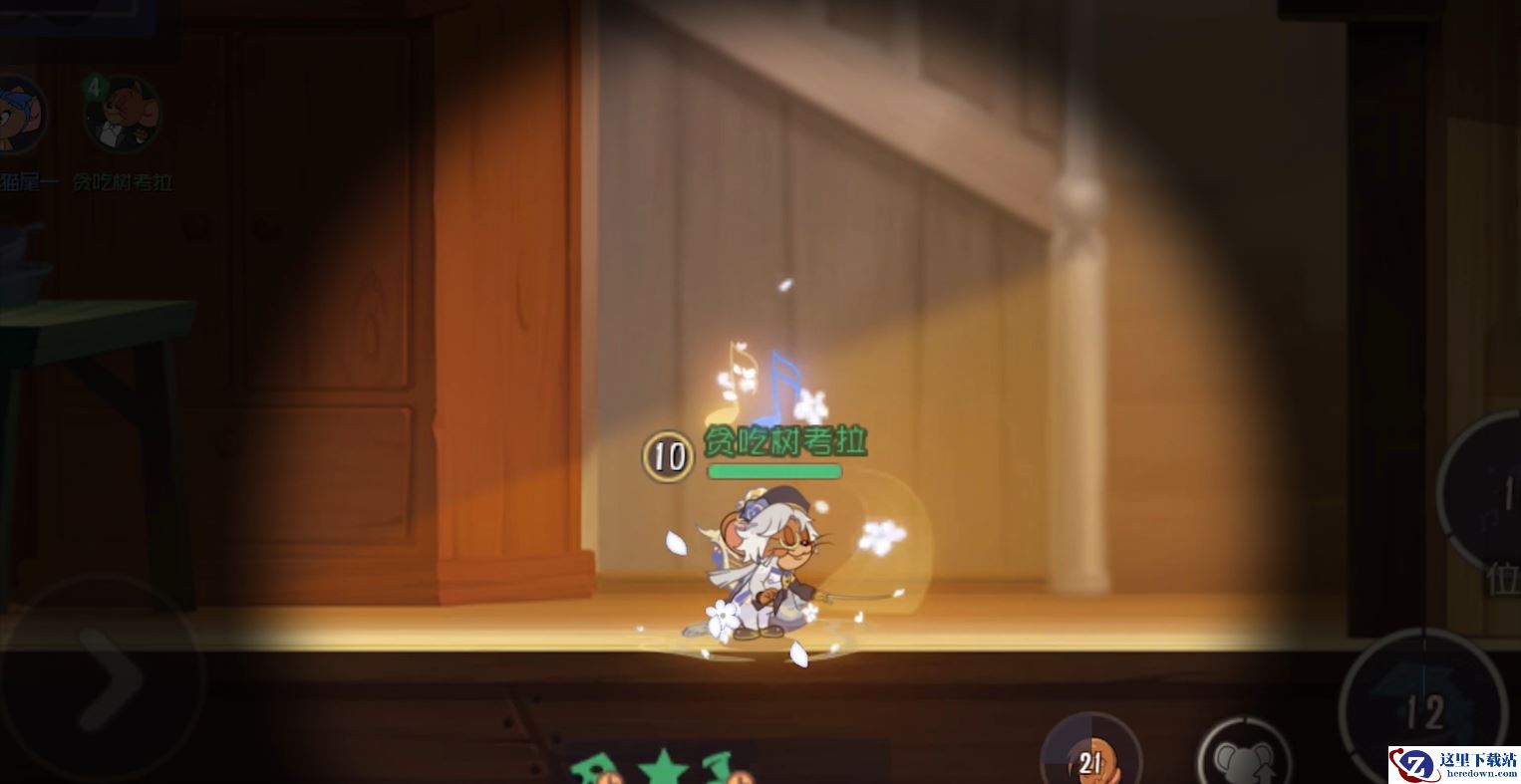 在欢乐的猫鼠追逐中,音乐家杰瑞·云端钢琴师在1S状态下即能拥有皮肤配套技能外观和华丽特效。在使用主动技能“风格骤变”时,周身会根据不同状态产生变化,指挥棒起伏挥舞间,飘逸绚烂的金色流光一同律动;武器技能“幻风礼服”使用时, 音乐家指挥棒将挥出金色流光,同时伴有飘飘洒洒的飞花,配合磅礴大气的音乐,更有气势与美感。