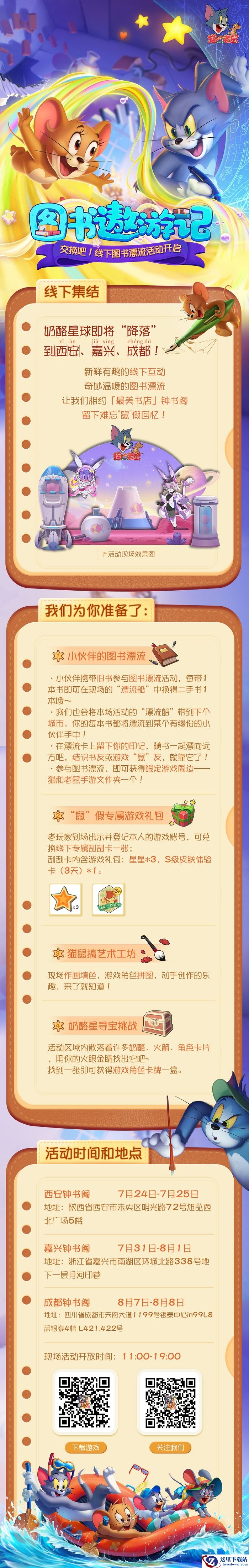 在这个“鼠“假,让书香四溢,让好书在猫鼠玩家中遨游!令人爱不释手的精美周边,停不下来的创造动手小游戏,都在《猫和老鼠》官方手游线下图书漂流活动现场恭候你的到来!