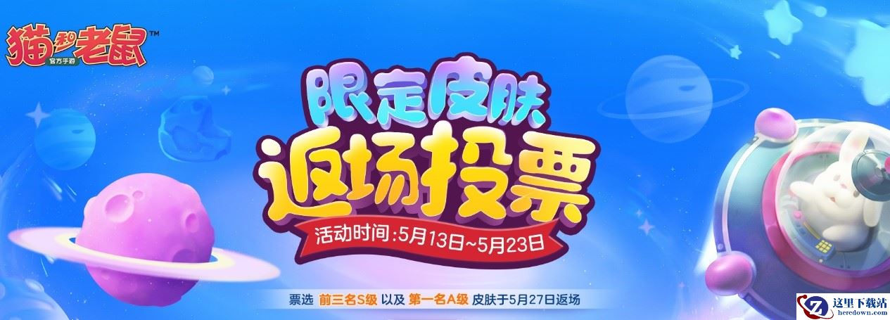 前往奶酪星,猫鼠同欢庆!华纳兄弟互动娱乐正版授权,网易欢乐互动手游《猫和老鼠》二周年庆典正式拉开帷幕!5月13日起,皮肤返场投票开启,12款限定S皮等你票选。游戏内出现了奶酪星大探险的活动入口,丰富多彩的奶酪星主题周年庆活动正在火热筹备中,敬请期待!