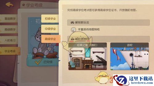 最后,等待小伙伴们的就是高级学业了,同样的想要取得高级学业的证书还是需要完成想应的任务:1、扮演猫或老鼠,赢得任意比赛5次;2、完成经典之家赛跑任务;3、完成雪夜古堡赛跑任务。