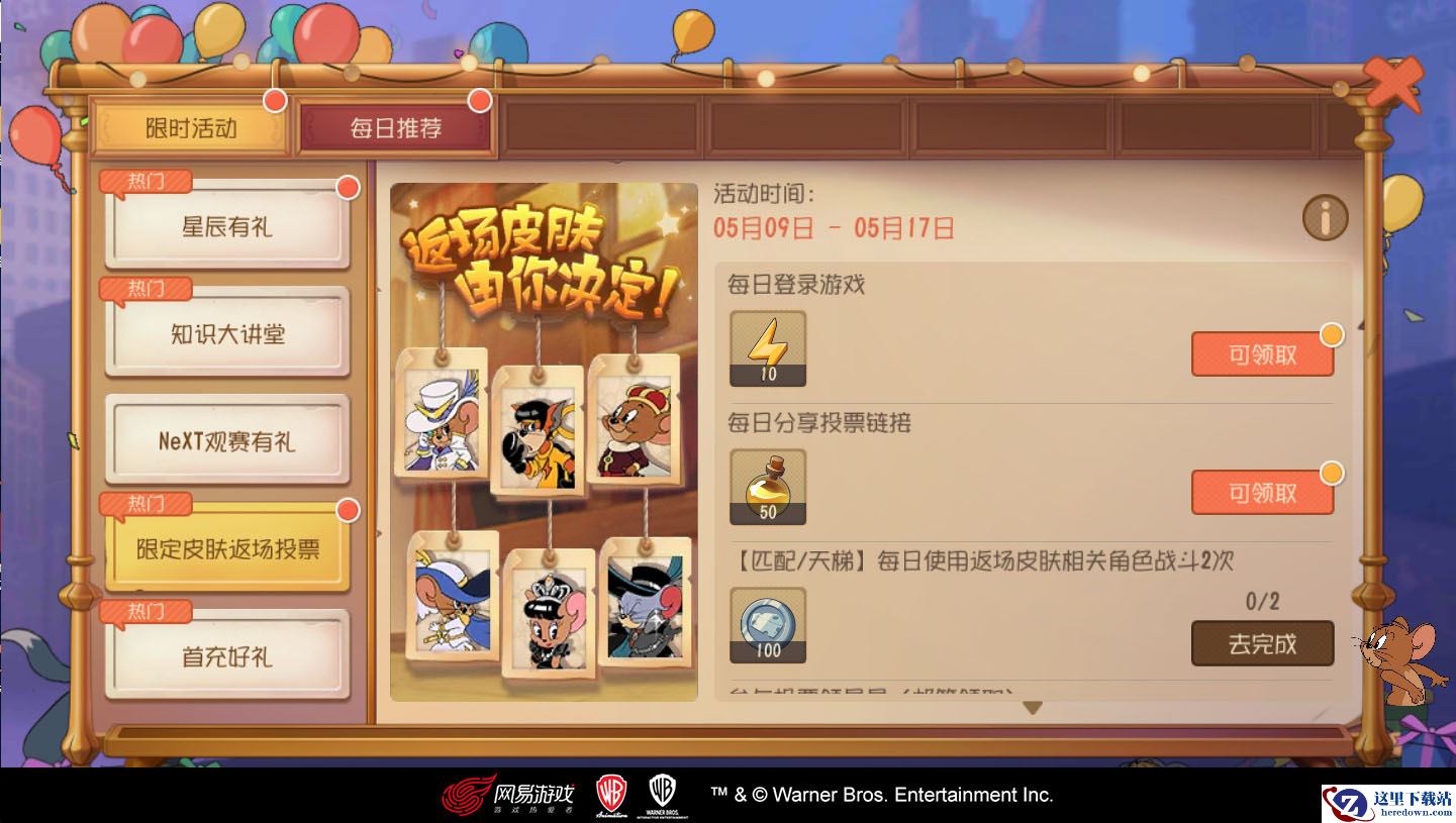 周年将至,狂欢开启!网易欢乐互动手游《猫和老鼠》周年庆即将到来,限定皮肤返场投票活动率先开启,更多诱人福利即将为你而来!即刻登录官网,查看更多游戏资讯!