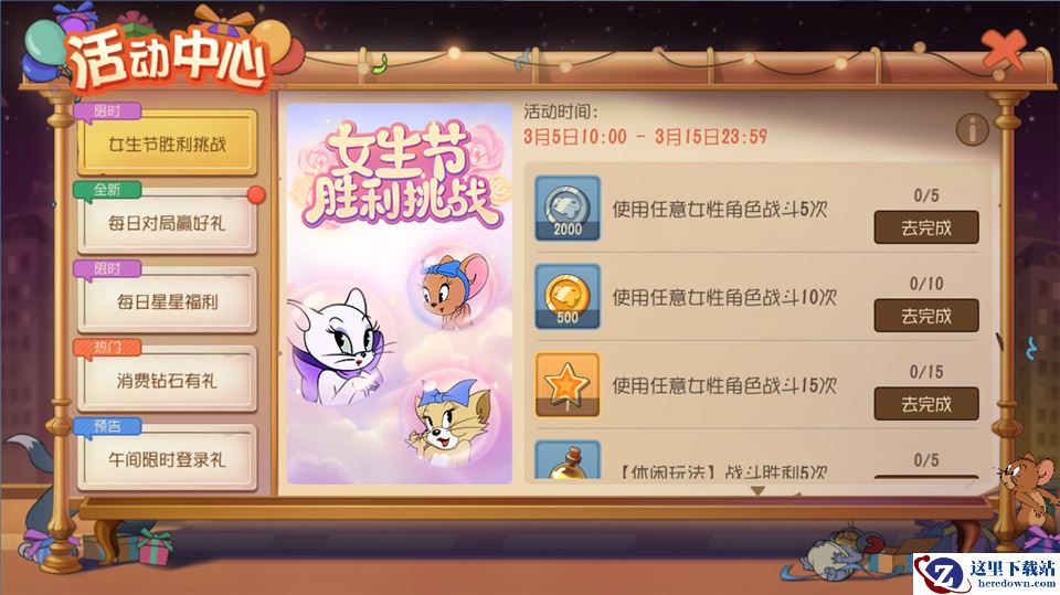 女生节是所有女性玩家的节日,但也是全体玩家的节日,在这一天里,我们可以与好友度过美好时光,可以同家人畅享温馨时刻,还可以在《猫和老鼠》手游中尽情追逐打闹,领取丰厚奖励!