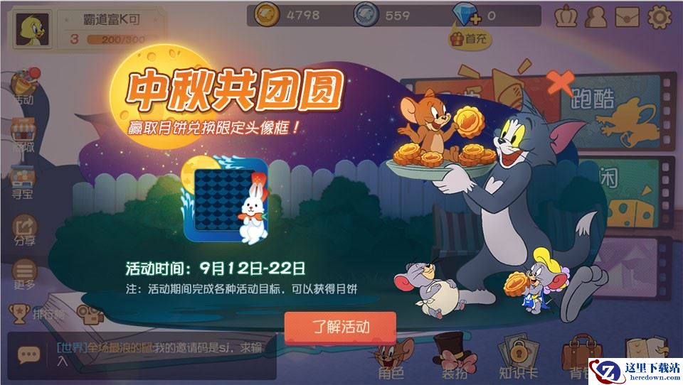 为庆祝这个阖家团圆的传统佳节,《猫和老鼠》也为各位玩家精心准备了珍贵实用美貌并重的豪华大礼,它们分别潜藏在各种中秋活动中。其中既有美味可口、还能兑换各种道具的月饼,也有海量金币、银币奖励、知识点、活跃度、星星乃至皮肤精华等等,还有中秋限定头像框!参与活动拿奖励,休假不误涨实力,《猫和老鼠》陪你过个开心节。
